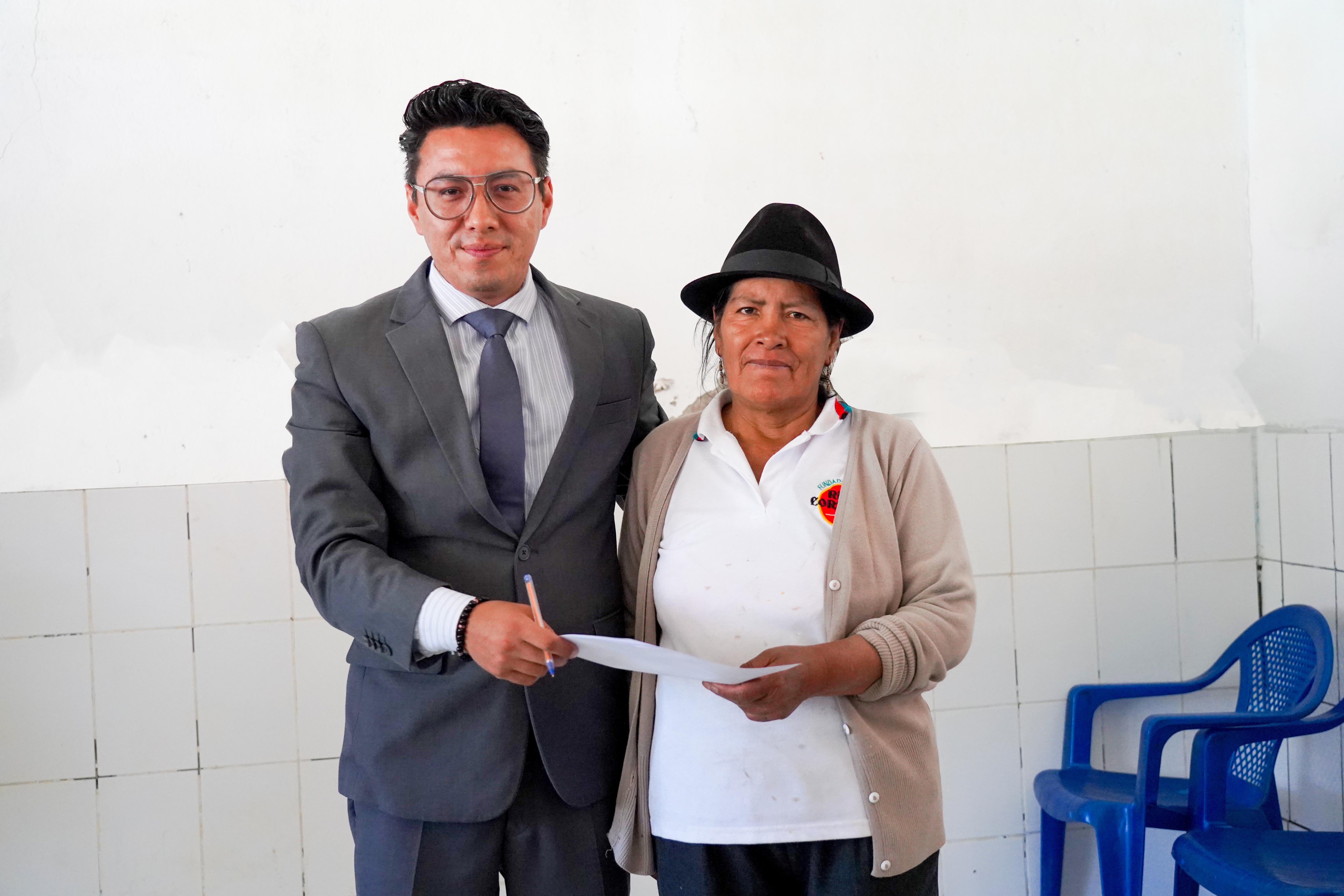 María Gloria Toapanta, presidenta de la comunidad, expresó el agradecimiento de todos: “Nosotros somos un grupo de 10 personas, entre hombres y mujeres, que sembramos chochos, zapallo, hortalizas, alverja, maíz, todo lo que da el campo. Trabajamos todos los días. Agradecemos esta donación a la UPS y a todas las personas que nos han ayudado. Siempre hemos tenido que alquilar máquinas del otro lado, y es difícil transportarnos. Esta máquina será una gran ayuda para llevar el pan de cada día a nuestros hogares”. María Gloria Toapanta, una mujer humilde, trabajadora y emprendedora, refleja el espíritu resiliente y positivo de la comunidad de Quinticusig.