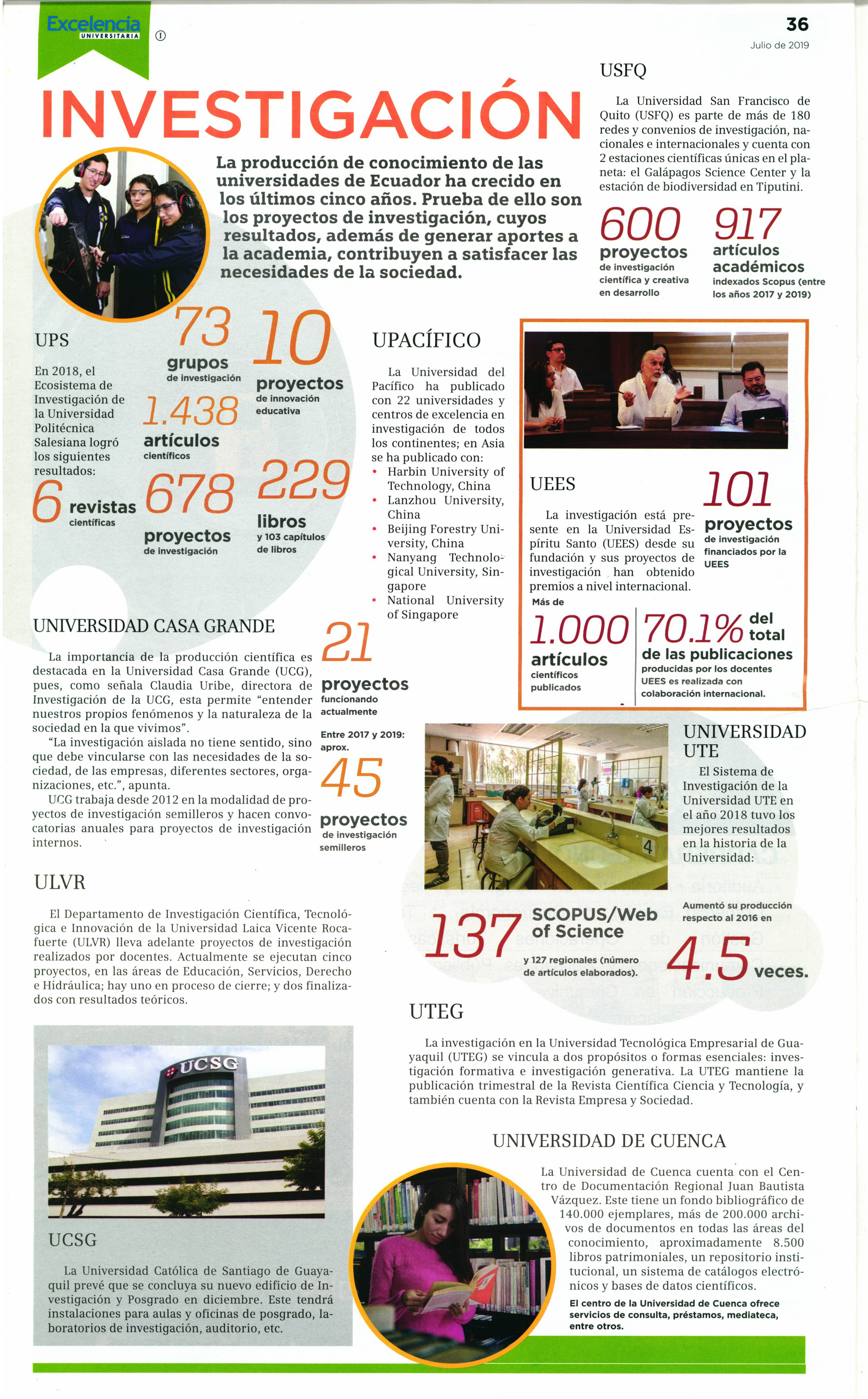 Cabe destacar que la UPS, es la única universidad del Ecuador con 6 revistas científicas de alto impacto indexadas y la única universidad con espacios de coworking para el trabajo cooperativo de investigadores y emprendedores.